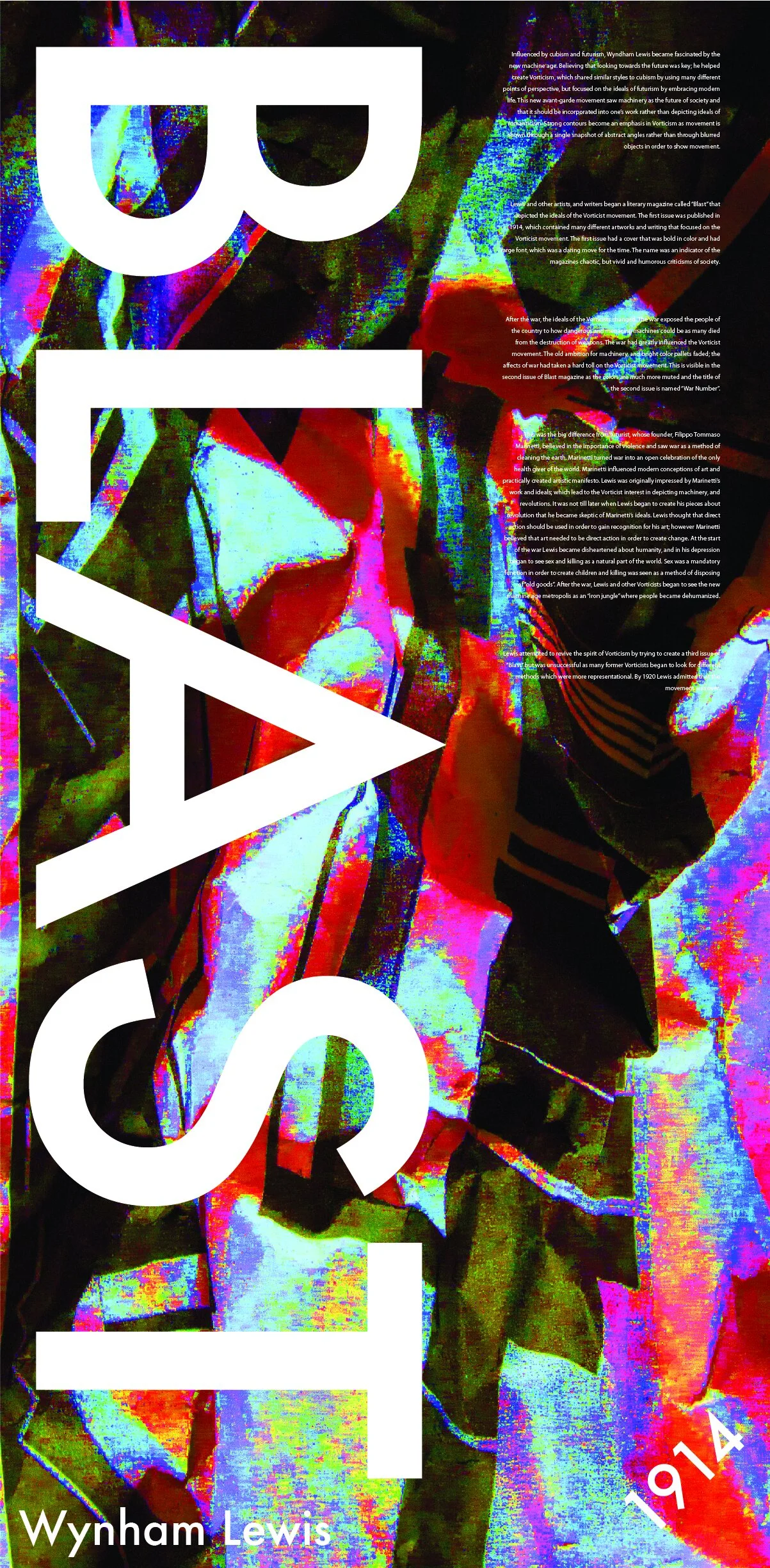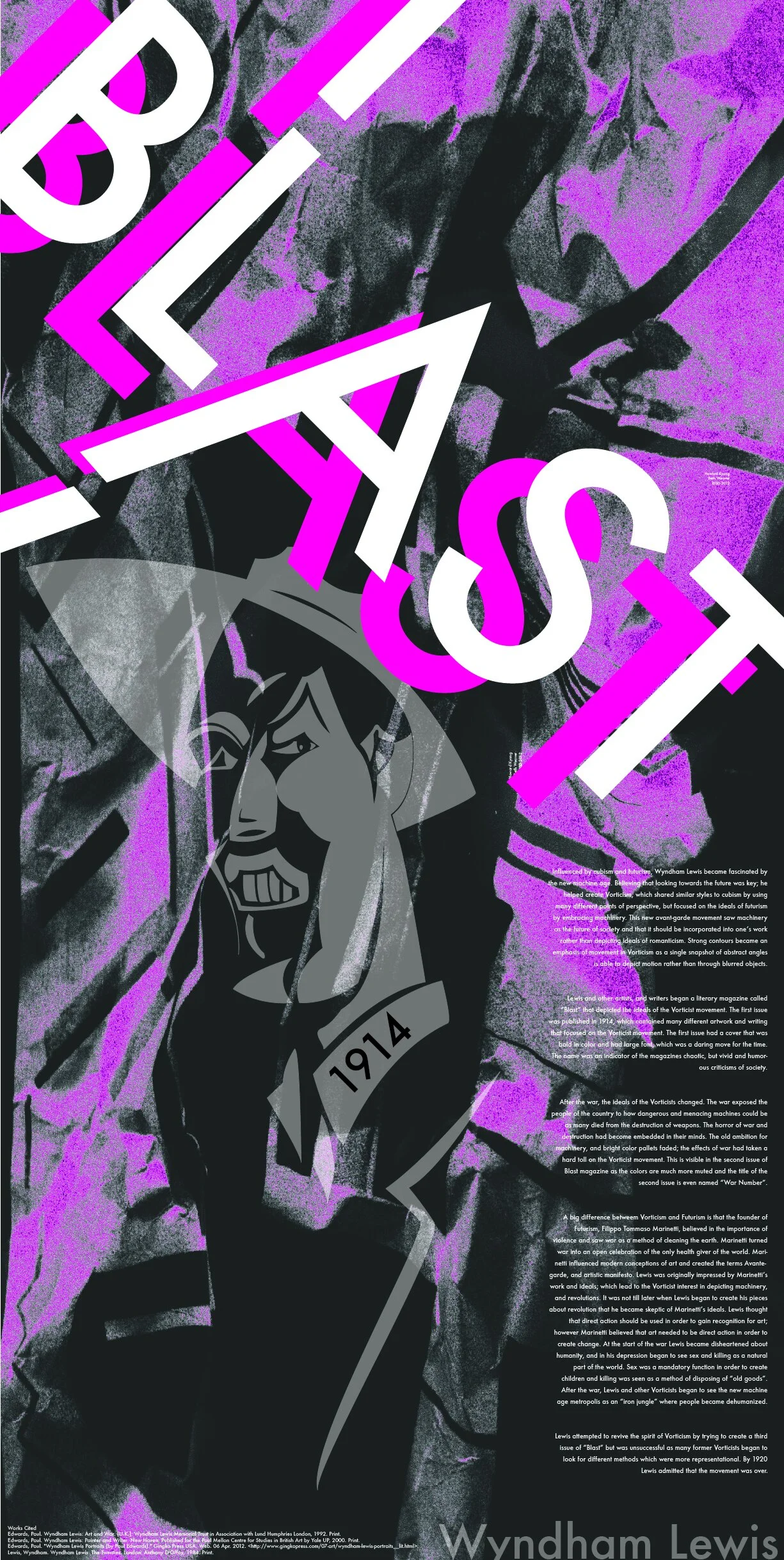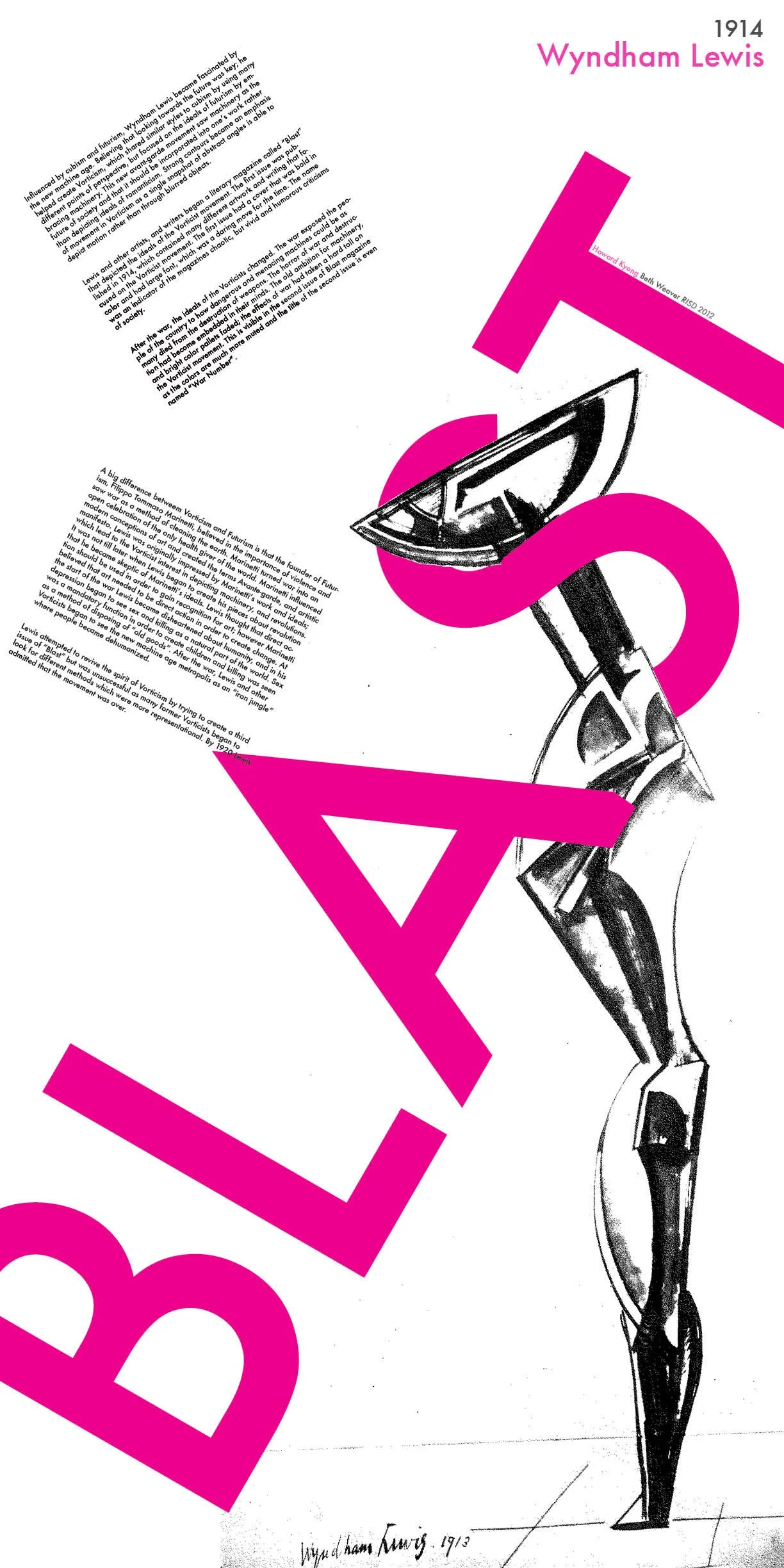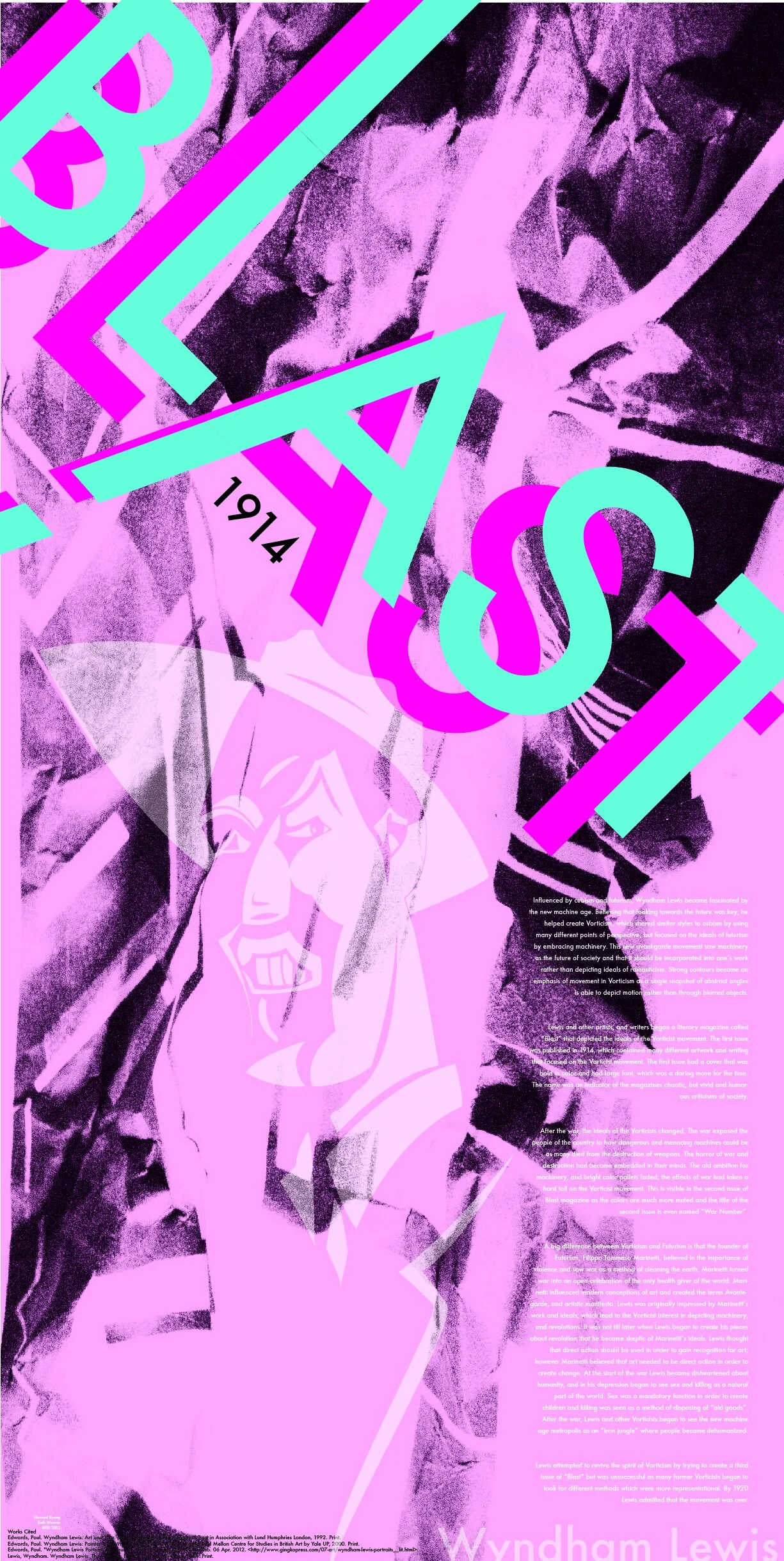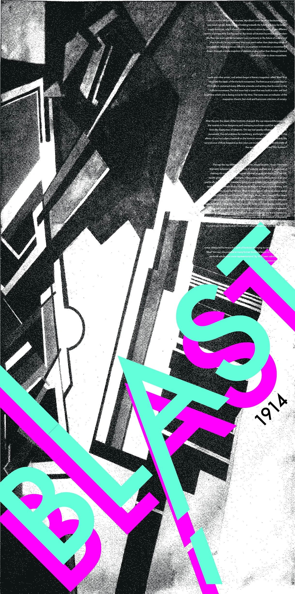 A series of posters inspired by BLAST “the quintessential modernist little magazine”. Founded by Wyndham Lewis who was also the founder of the Vorticist movement.